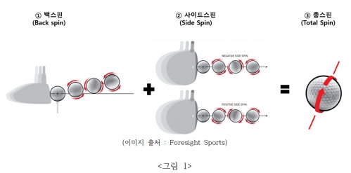 사이드스핀은 공이 좌우로 회전하는 스핀을 의미합니다. 스윙 패턴이나 클럽페이스의 방향에 따라 발생하며, 드로우(Draw)나 페이드(Fade), 슬라이스(Slice), 훅(Hook)과 같은 구질을 만들어냅니다.