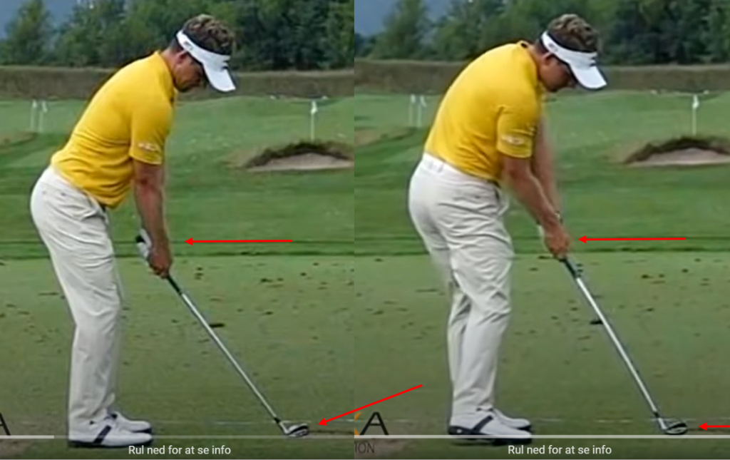 샤프트가 부드러우면 토우다운이 커지고, 클럽이 지면에 더 납작하게 닿는다.